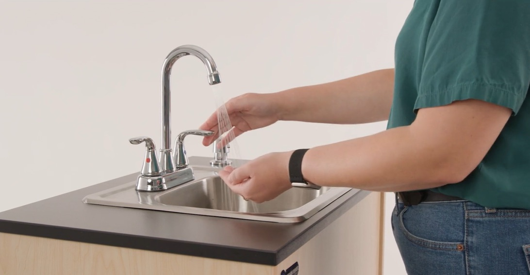 - Wet Your Hands: Start by wetting your hands with clean, running water. It can be warm or cold—temperature does not affect germ removel but may affect comfort.